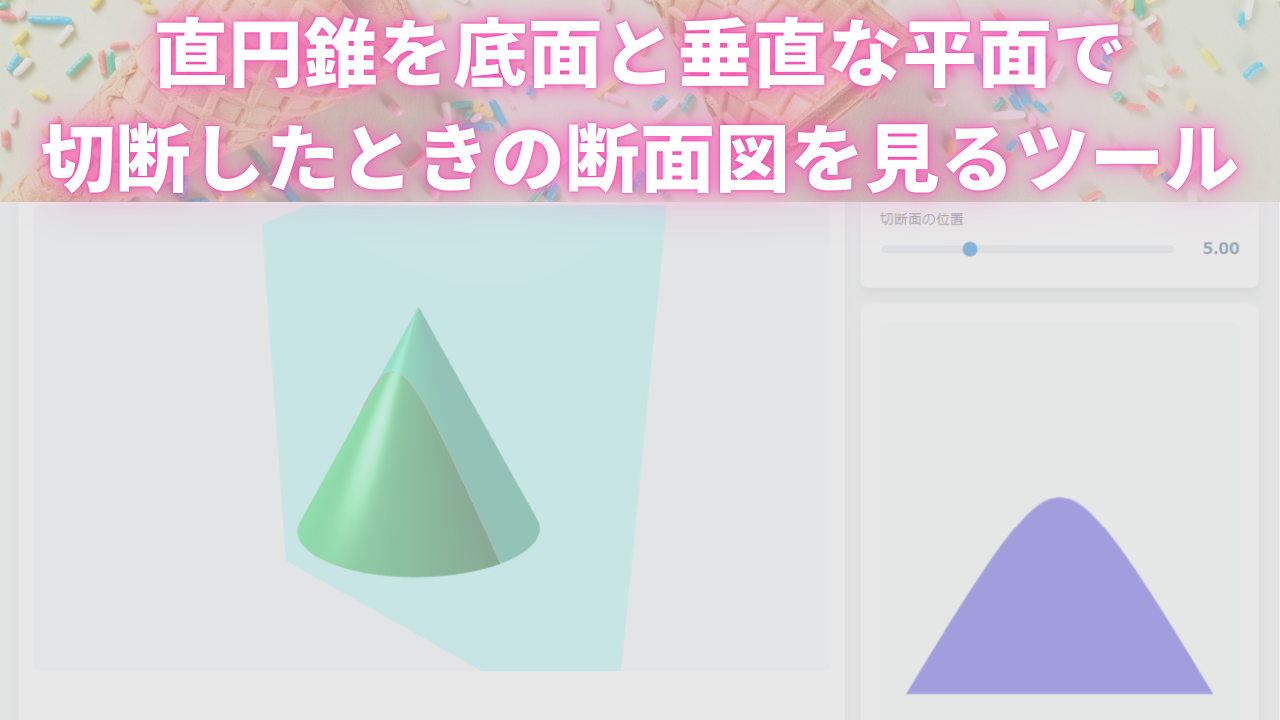 断面は、母線を漸近線とする双曲線ですね(頂点通らない場合。通る場合は二等辺三角形)。